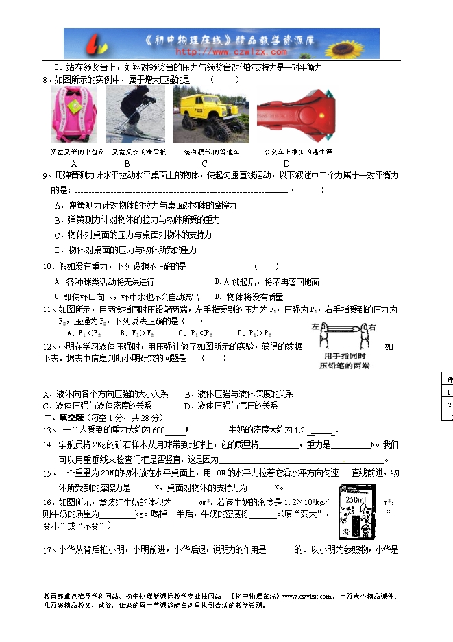- 2252安徽省阜阳市2015-2016学年八年级下学期期中考试物理试题(解析版)
