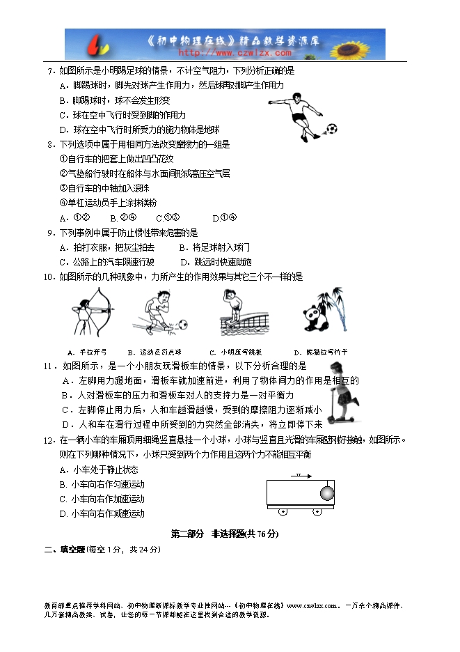【内容简介】一、选择题(每小题4个选项中只有1个符合题意,每题2分,共24分)