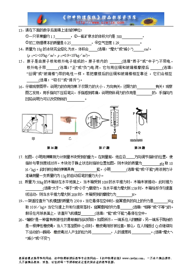 1.小明同学新买的橡皮擦用了一段时间后,没有发生变化的物理量是