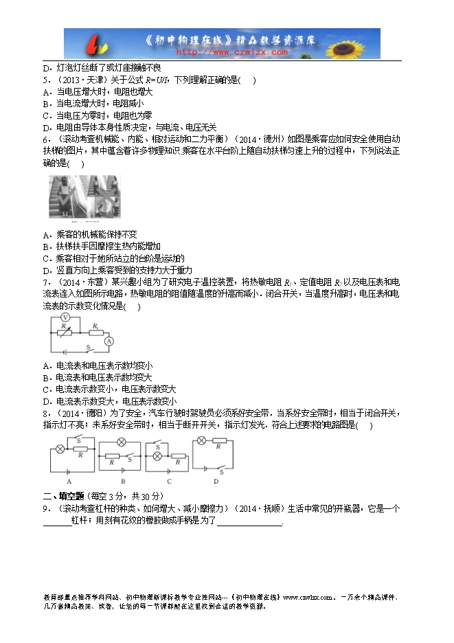 《火线100天》2015中考物理单元测试:六、电路 欧姆定律(附答案)