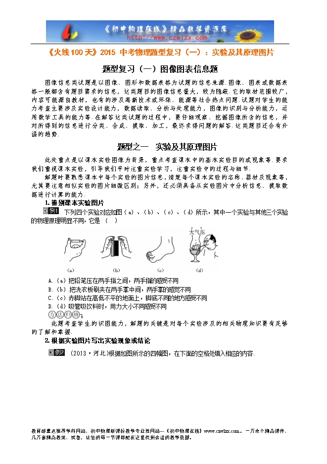 《火线100天》2015 中考物理题型复习(一): 实验及其原理图片