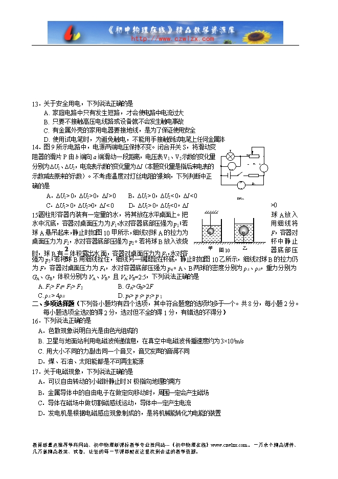 - 下一份试卷:北京市平谷区2015年中考一模物理试卷及答案