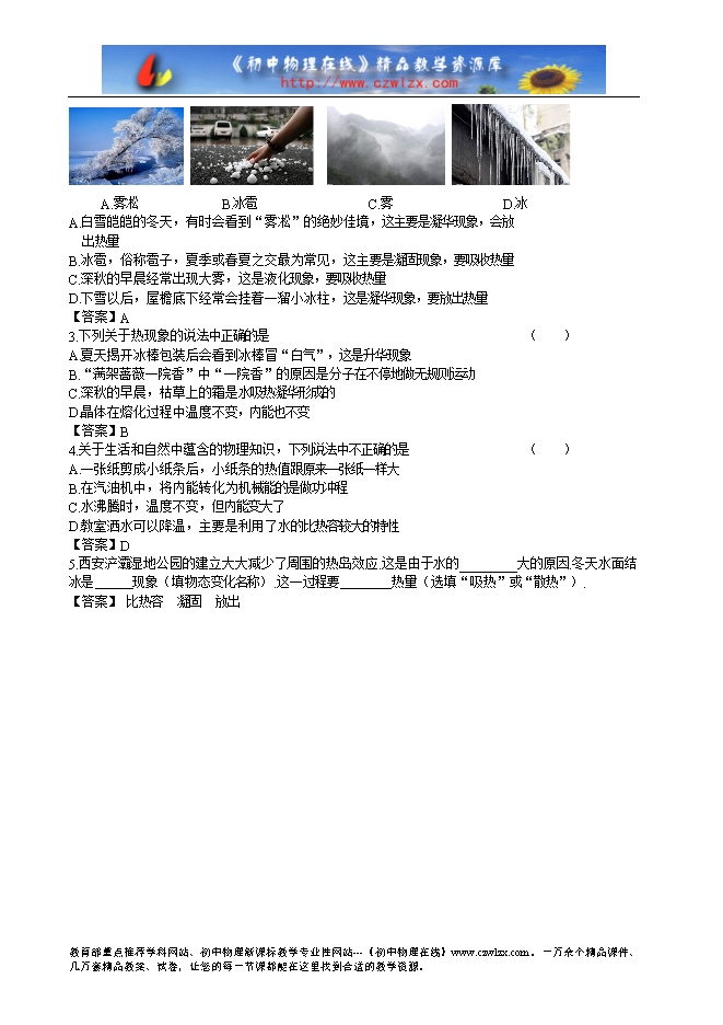 C.海波升华吸热、凝华放热 D.海波熔化吸热、液化放热
