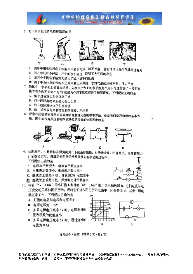 四川省遂宁市2015年中考理综物理试卷(扫描版无答案)