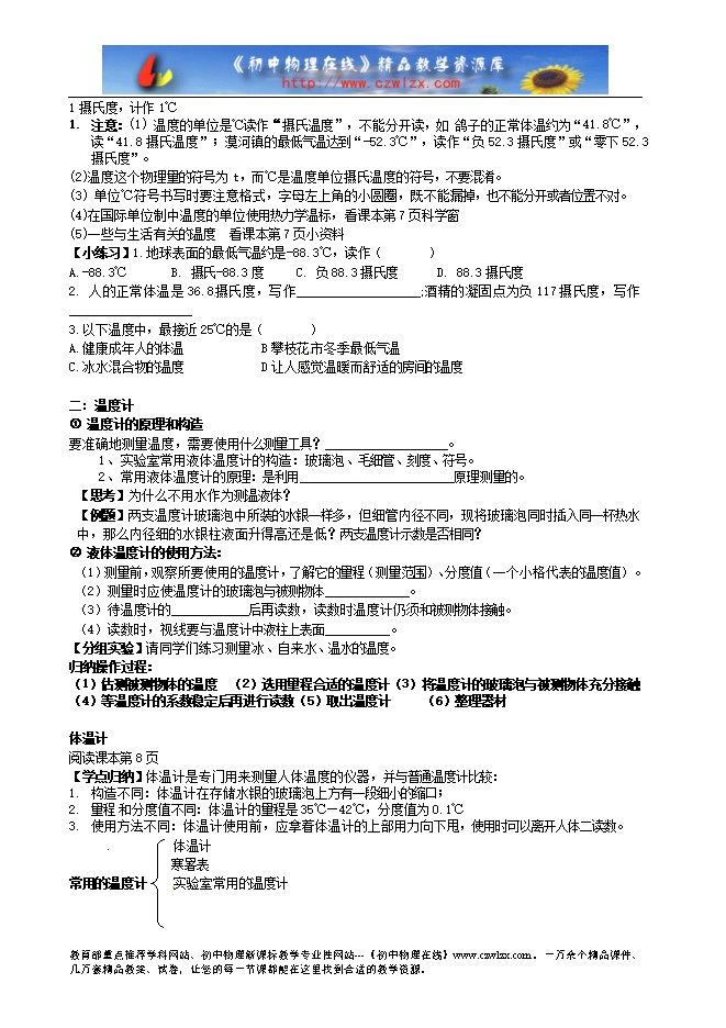 1.温度的物理意义,了解生活环境中常见的温度值;尝试对温室效应、热岛效应等发表自己的见解,增强环保意识。