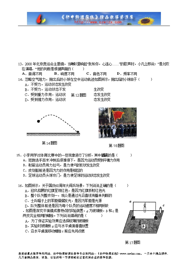 - 2819北京市西城区2014-2015学年下学期初中八年级期末考试物理试题及答案