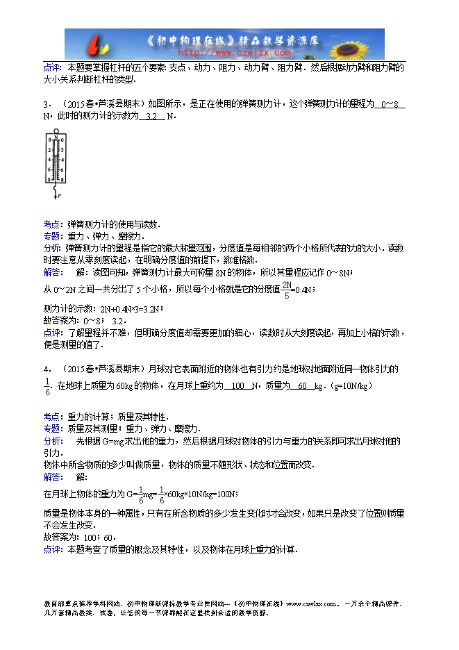 - 1950安徽省合肥市庐江县2014-2015学年八年级(下)期末物理试题(word解析版)