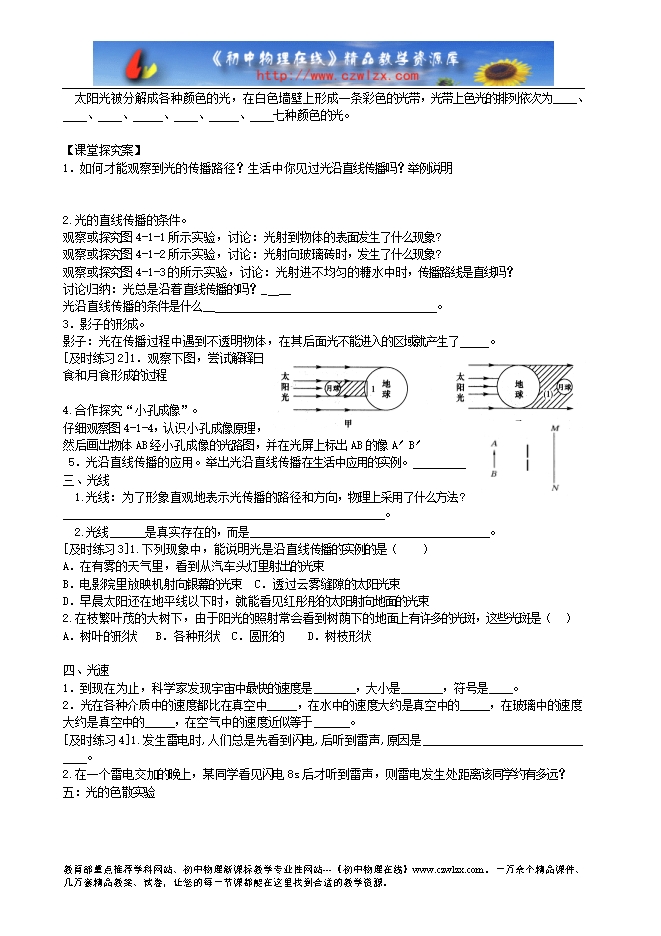 粤教沪科版八年级物理上册《3.1光世界巡行》导学案