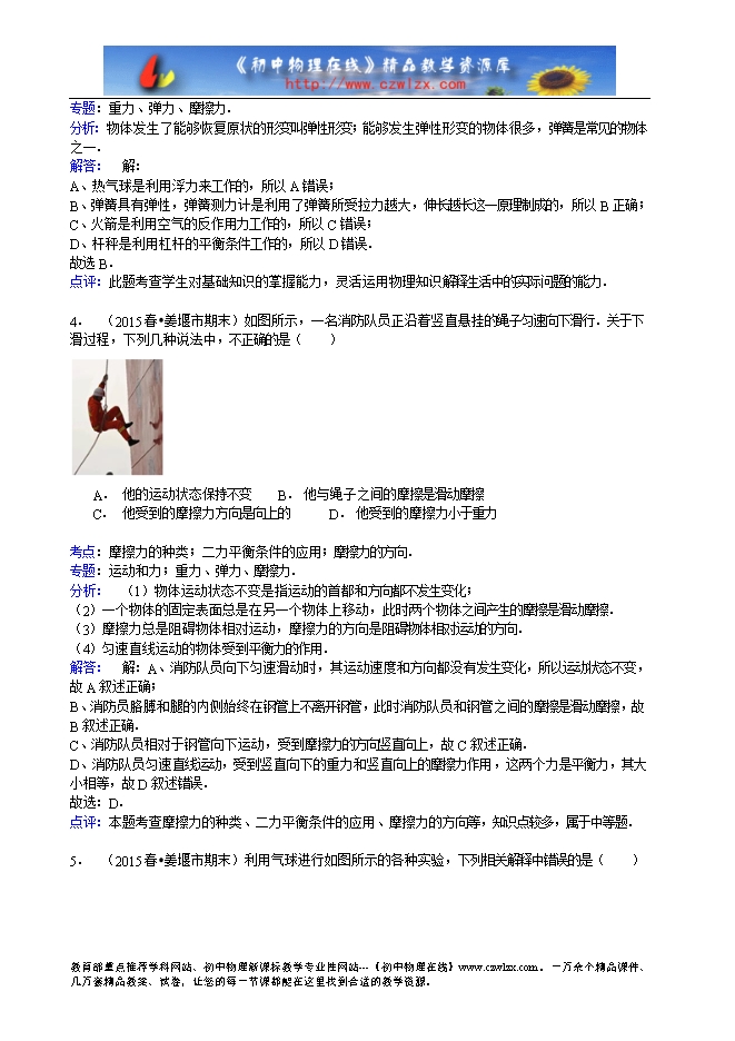 - 2963四川省广安市岳池县2014-2015学年八年级(下)期末物理试题(word解析版)