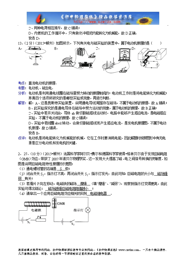 2015年全国中考物理60套试题汇编:电与磁(word版,29页)