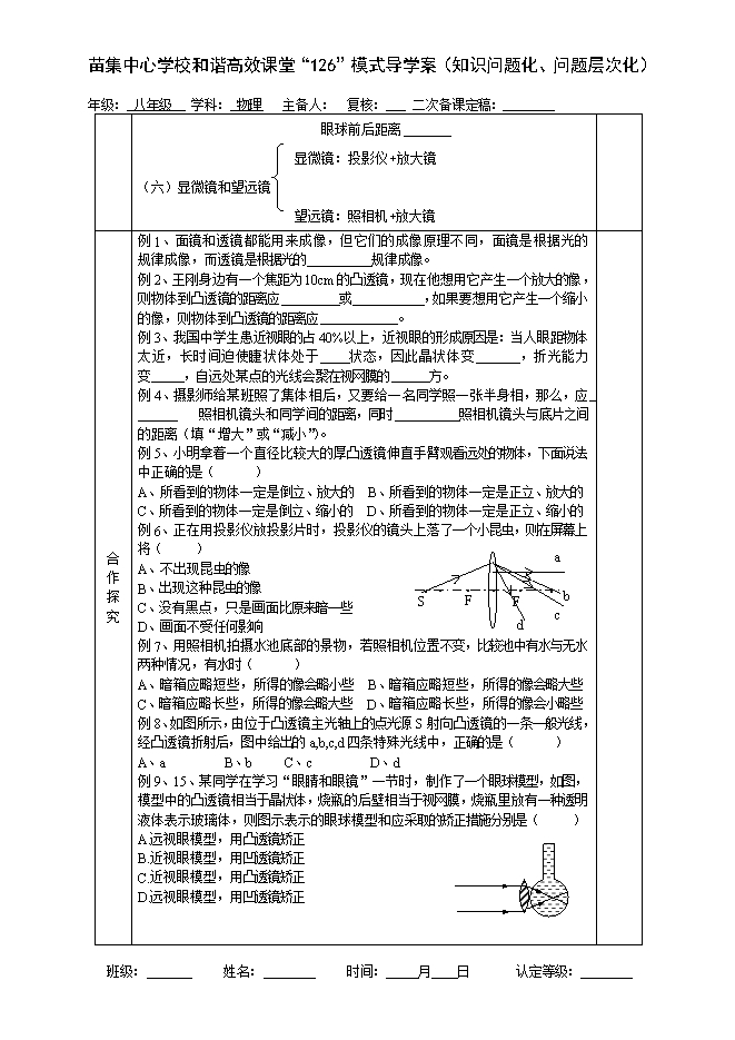 苗集中心学校导学案,透镜及其应用原创2015年08月24日/UploadFiles/nopic.gif