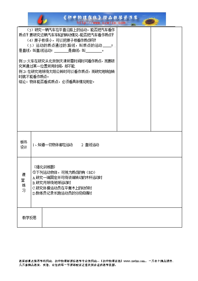 1、知道一切物体都在运动,为了描述运动必须选择参考系。