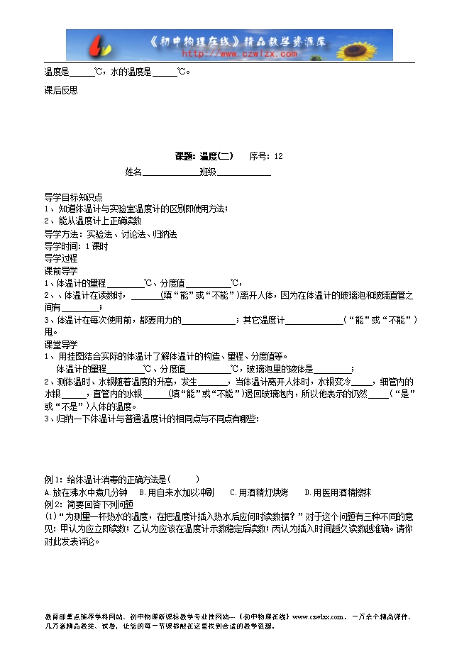 太和县第六中学八年级物理上册导学案:人教版《3.1温度》(2课时)