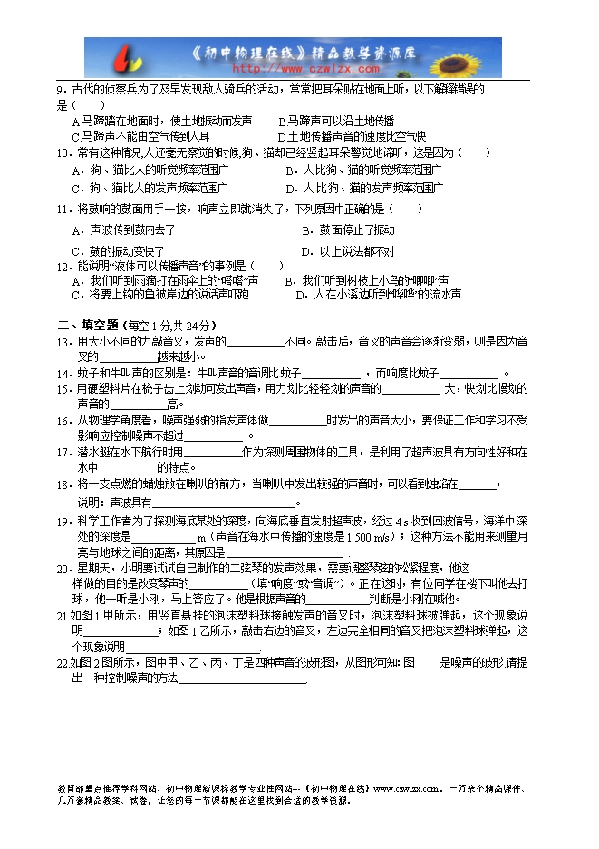 沧州市献县垒头中学2015-2016学年八年级上册《第二章 声现象》测试题(基础卷,附答案)