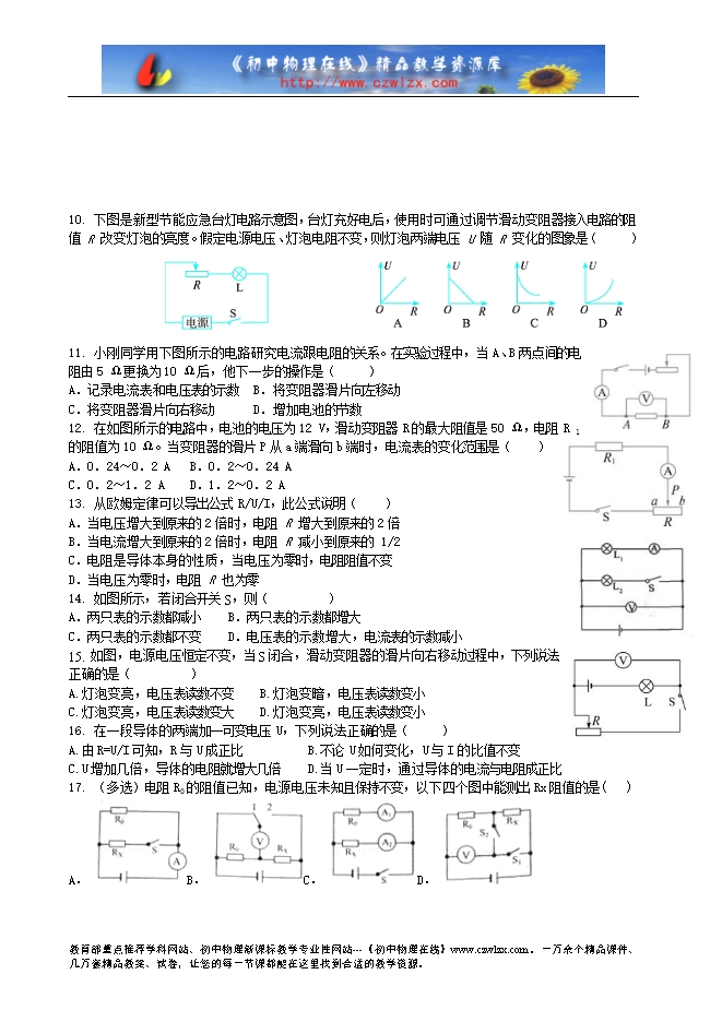 A.0Ω~10Ω B.0Ω~20Ω C.5Ω~20Ω D.2.5Ω~10Ω