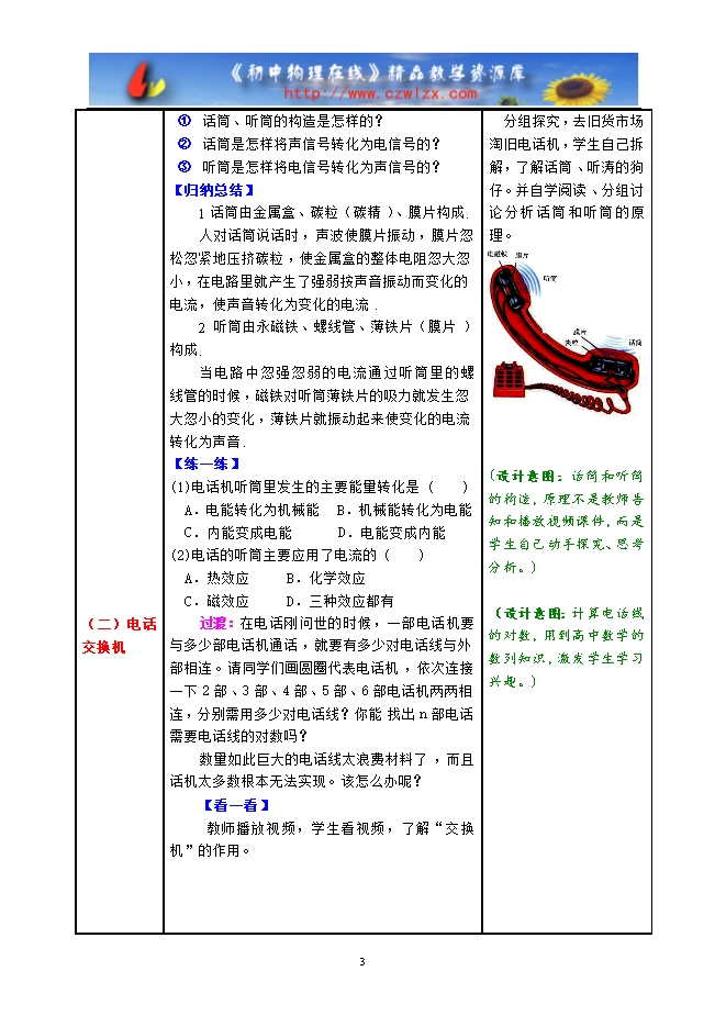 新人教版九年级物理《21.1现代顺风耳—电话》三栏式精品教案(附教学反思和达标检测)