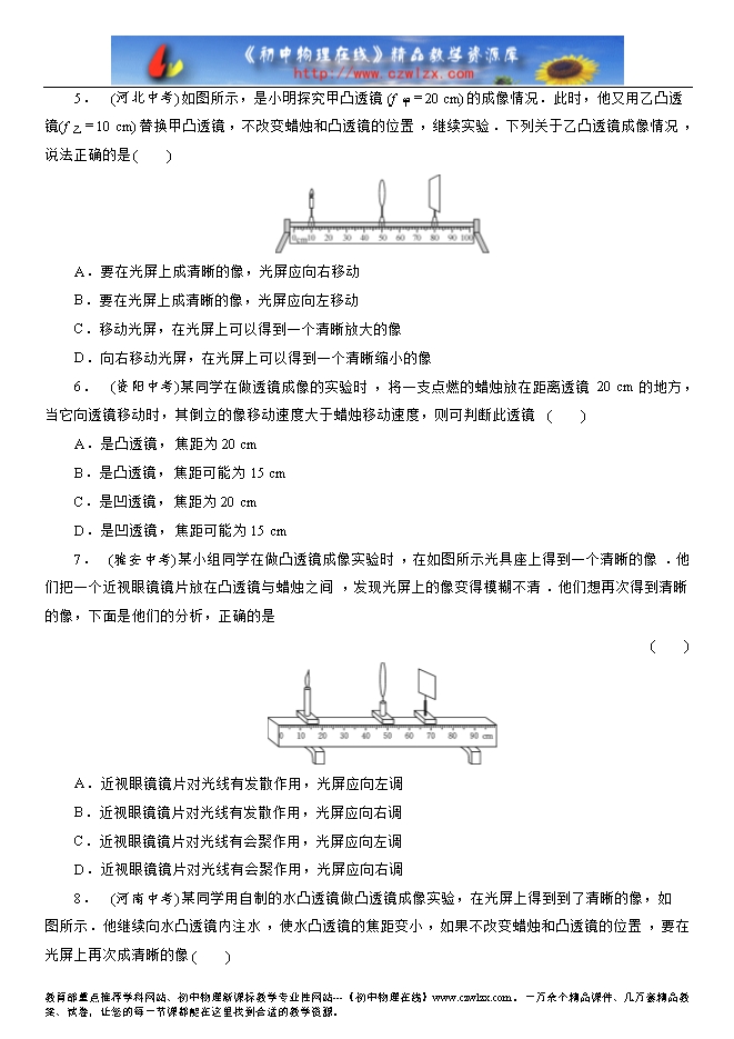 人教版八年级物理课时训练:第五章 透镜及其应用(附答案)