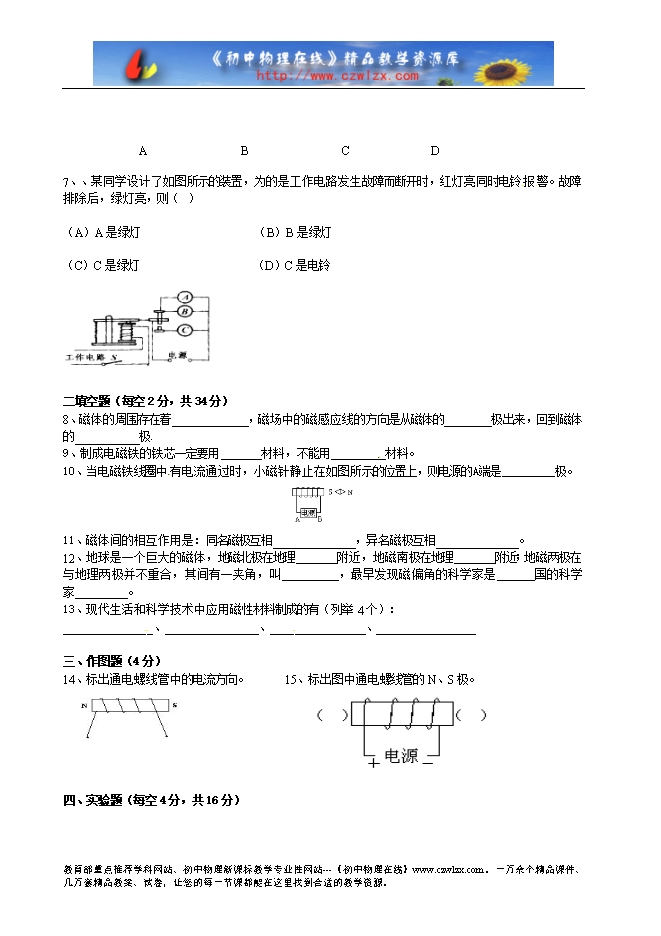 (C)电磁感应现象 ( D)通电螺线管的磁性