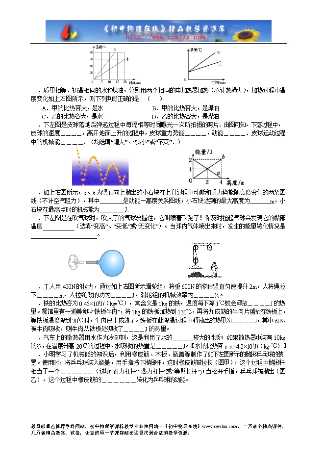 【内容简介】1.体积相等的实心铜球和实心木球在水平地而上以相同的速度做匀速直线运动,铜球的动能为EK铜,木球的动能为Ek木。已知铜的密度大于木头的密度,则( )