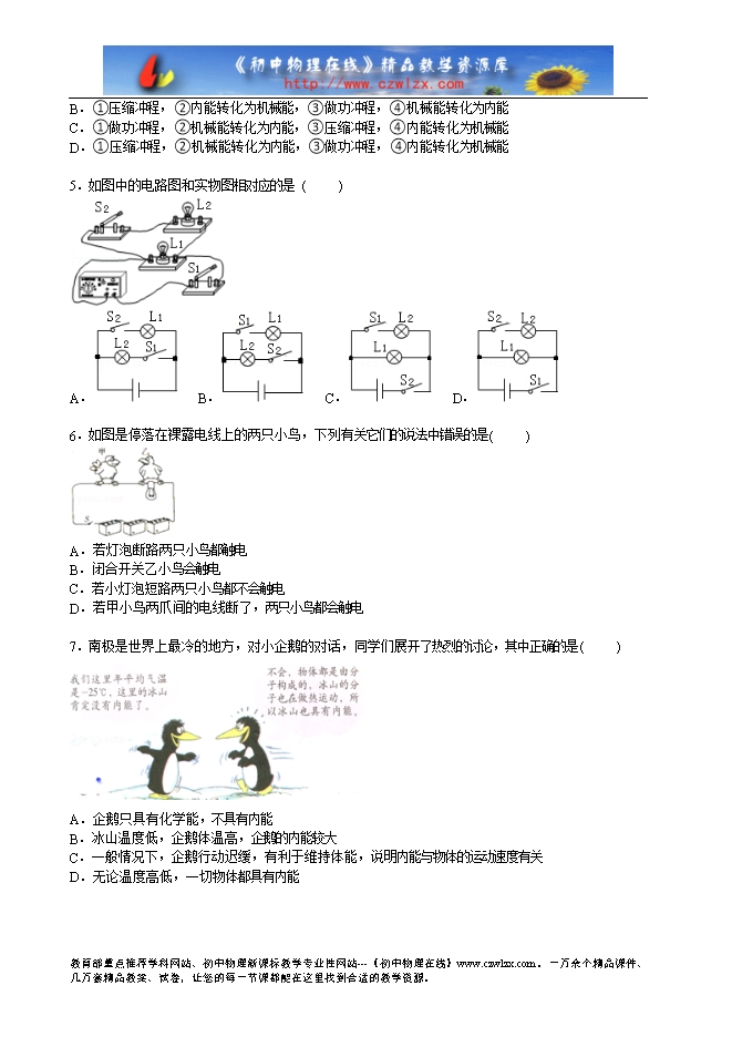 - 2190湖北省安陆市棠棣镇百花中学2016届九年级上学期第一次月考物理试题及答案