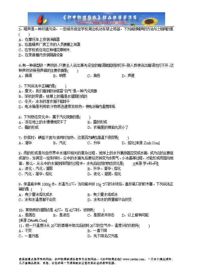 3.嗓声是一种环镜污染,一些城市规定学校周边机动车禁止鸣笛,下列减弱噪声的方法与之相同的是( )