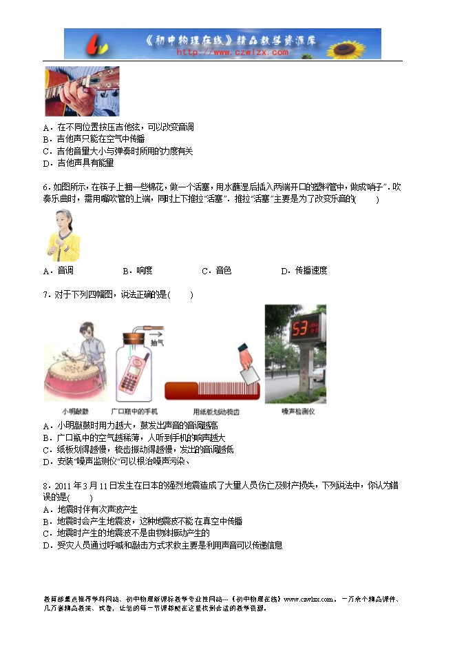 5.如图所示,小王同学正在弹奏吉他.下列说法错误的是( )