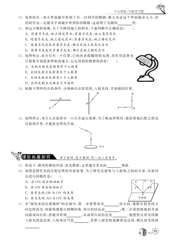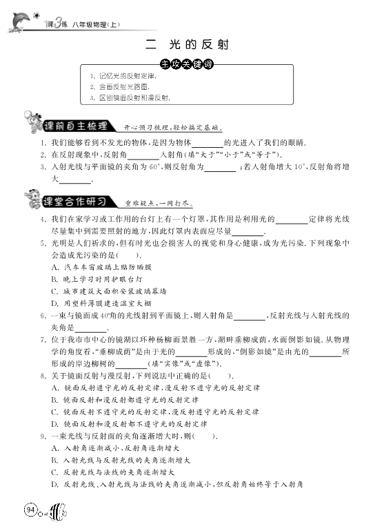 【1课3练】北师大版八年级物理《5.2光的反射》课前自主梳理+课堂合作研习+课后拓展探究(pdf版)