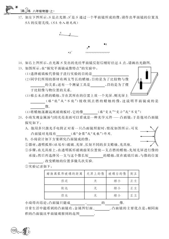 【1课3练】北师大版八年级物理《5.3学生实验:探究--平面镜成像的特点》课前自主梳理+课堂合作研习+课后拓展探究(pdf版)