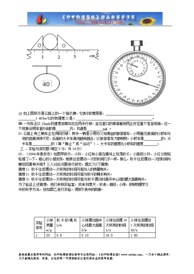【内容简介】八上第 3 周 物理 学科周考试卷