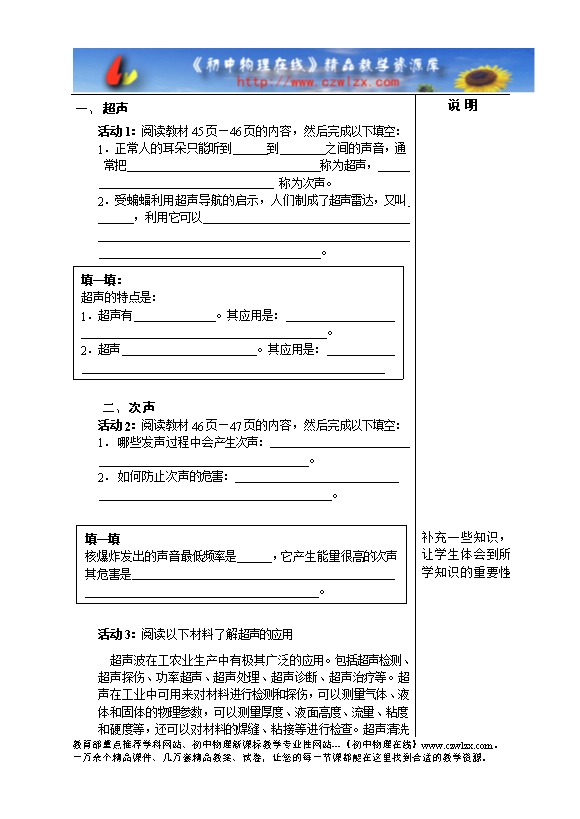 1.正常人的耳朵只能听到 到 之间的声音,通常把 称为超声,