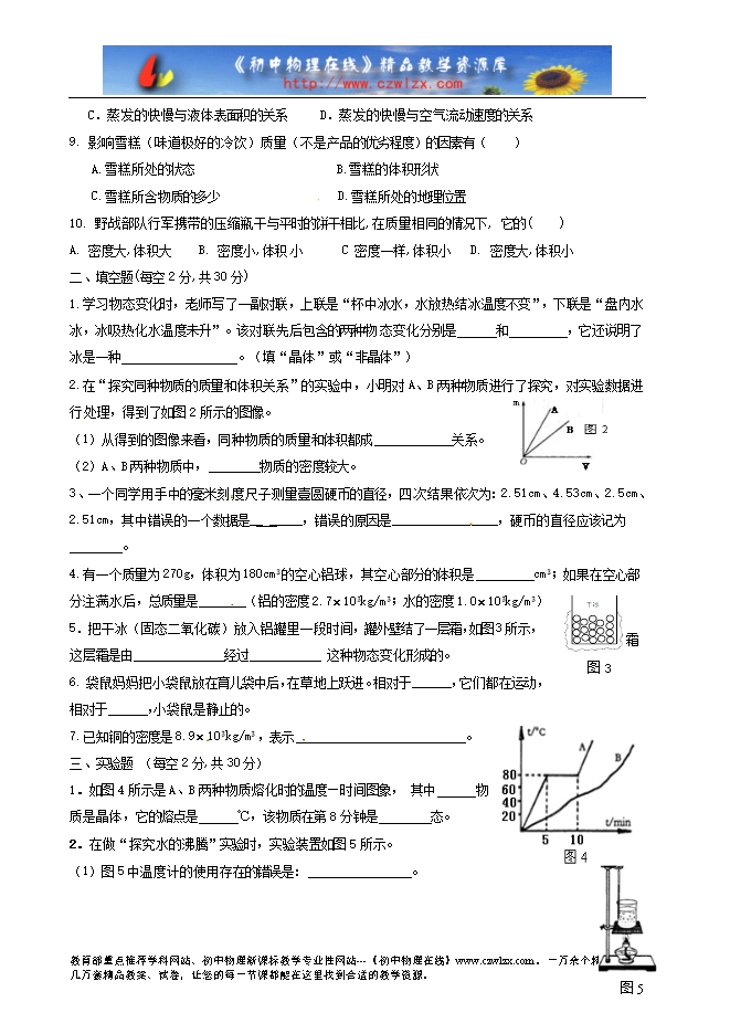 C、同一种物质,ρ与m成正比 D、以上说法都不正确