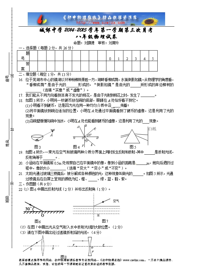 - 2365江苏省东台市梁垛镇中学2015-2016学年度第一学期期中检测八年级物理试卷及答案