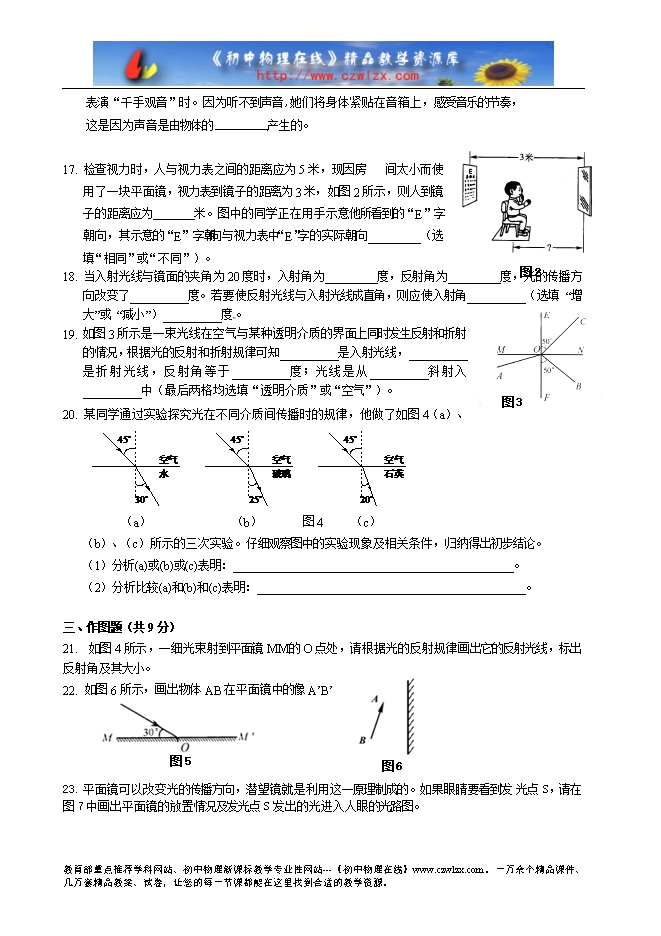 上海市浦东新区第四教育署2015-2016学年八年级(五四学制)上学期期中质量抽测物理试题及答案