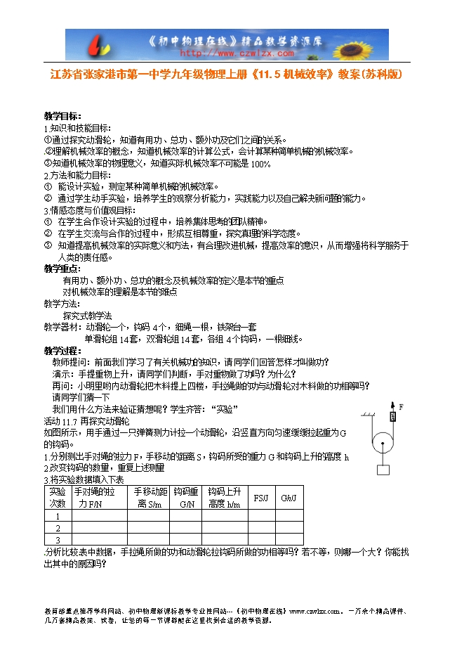 江苏省张家港市第一中学九年级物理上册《11.5机械效率》教案(苏科版)