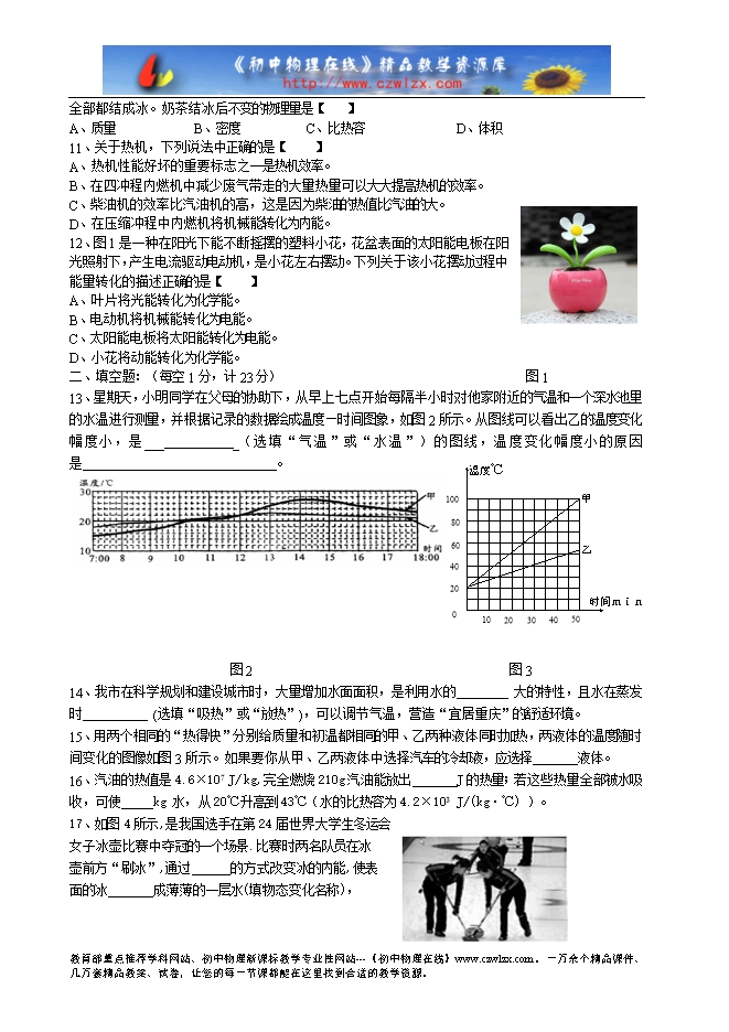 3、甲汽油机的热机效率比乙汽油机的热机效率高,这表明【 】