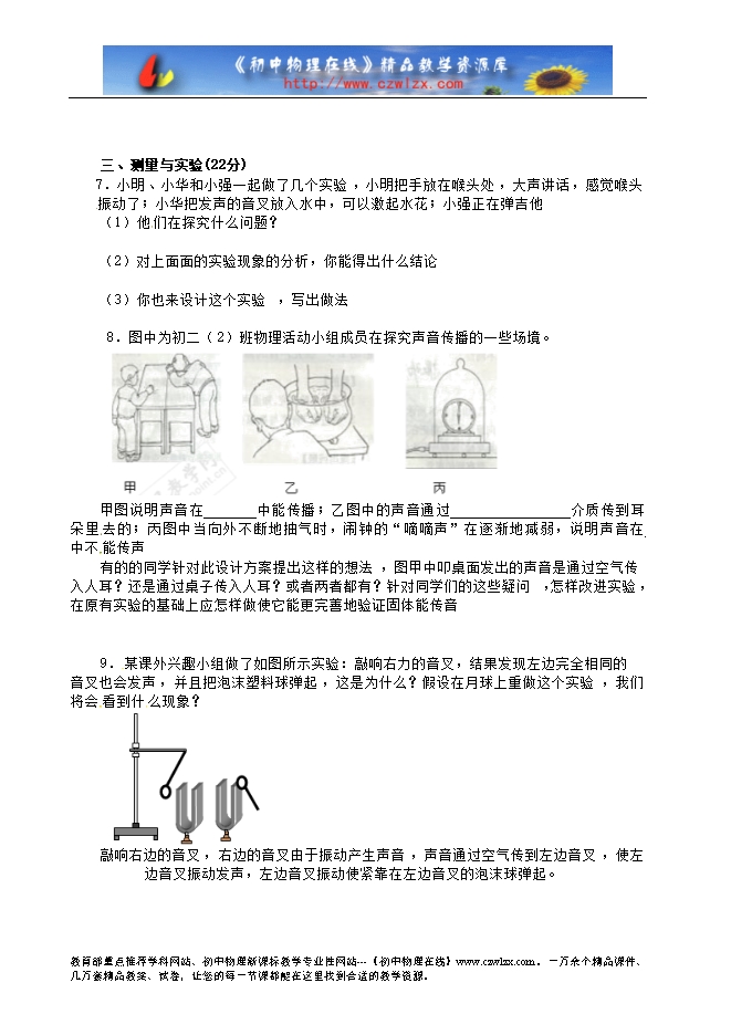 A、 传声 B、传热 C、响度 D、通风二、论证与计算(15分)
