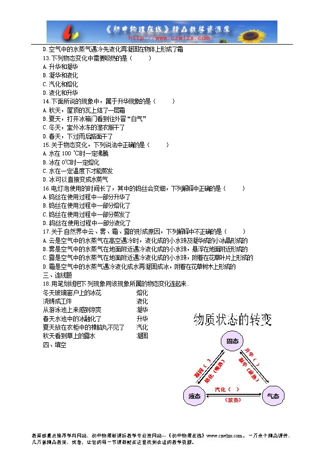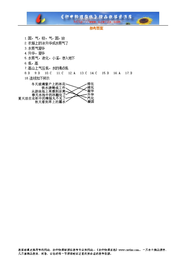 【作业精编】八年级上册物理《3.4升华和凝华》课课练及答案(人教版)