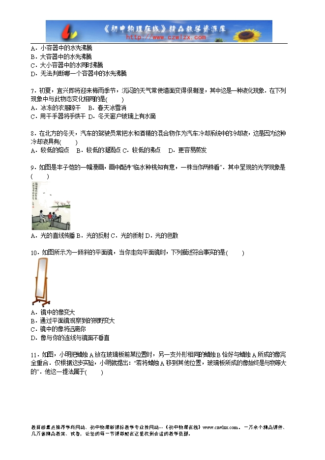 1.如图,把装有水的酒杯放在桌上,用润湿的手指摩擦杯口边缘使其发声,改变水量发现发出的声音不同.对此同学们提出四个问题,其中较有价值且可探究的问题是( )