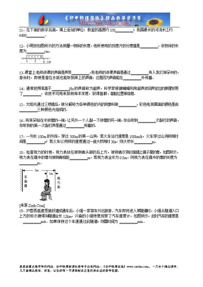 - 1666宁夏中宁二中2015-2016学年八年级上学期期中考试物理试卷(新课标北师大版2015年11月,无答案)