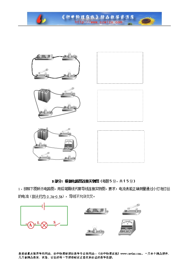 9、电流的测量工具是电流 表,其电路图中符号是 ,电流表要和被测用电器_________;