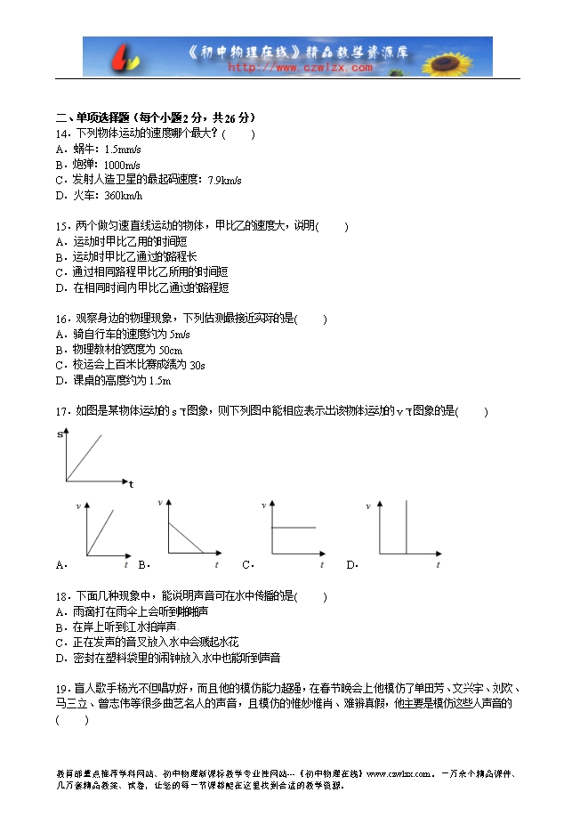 【点评】本题考查了求速度、估计人步行的速度,是一道基础题,熟练应用速度公式、根据实际情况做出合理的估计即可正确解题.
