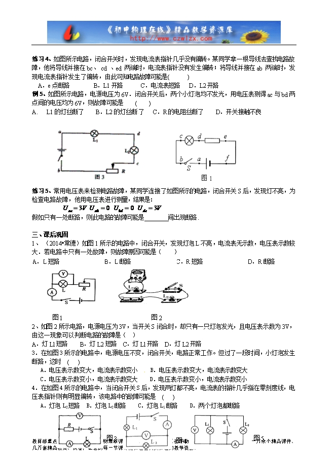 广东省深圳市文汇中学2015届九年级上学期物理周末作业:电路故障专题