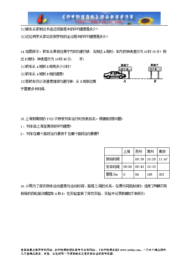 【内容简介】1.描述物体的运动快慢我们既可以取 相同时,比较 的长短;也可以取 相同时,比较 的长短。在田径运动会中,看台上的观众采用的是第 种方法来判断运动员的快慢的,而终点裁判采用的是第 种方法来判断运动员的快慢的。在运动路程和时间都不同时 ,比较物体运动快慢的方法是 。