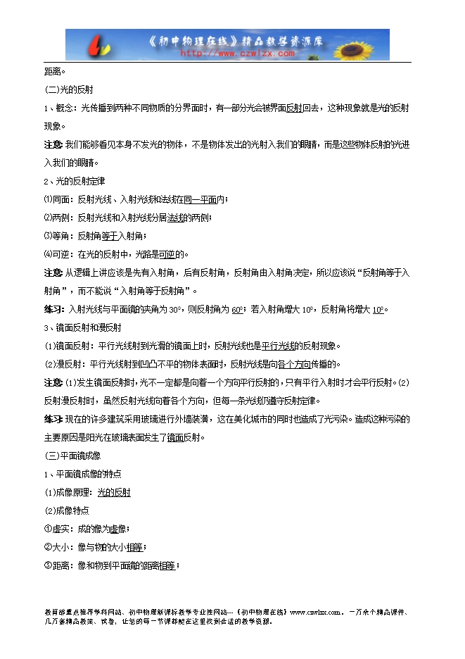 (1)在不同的介质中,光的传播速度一般是不同的。