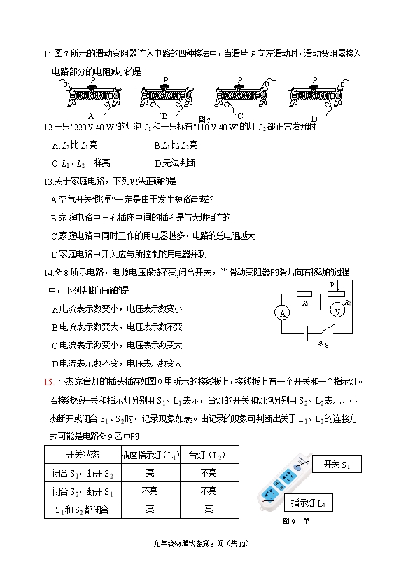 北京市门头沟区2015-2016学年度第一学期期末初三物理试题(word版)含答案及答题卡
