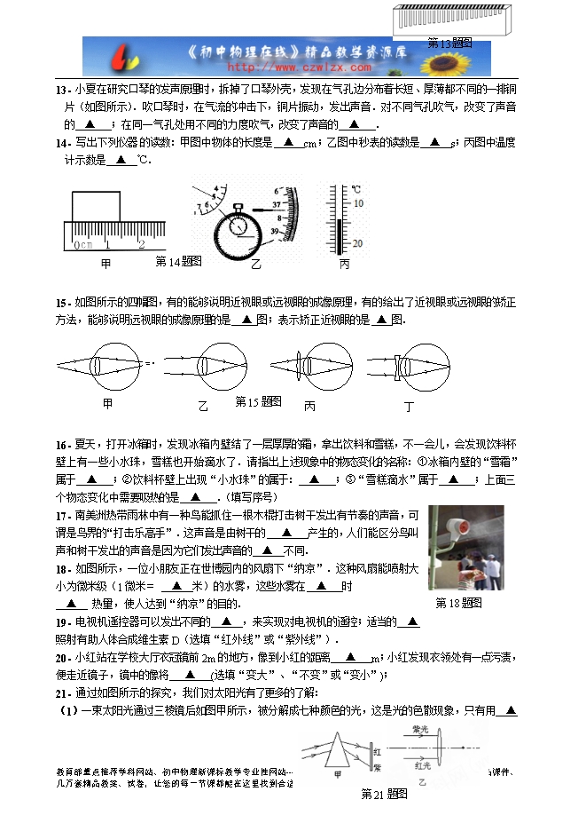 1.下列关于声现象的说法正确的是 ( ▲ )