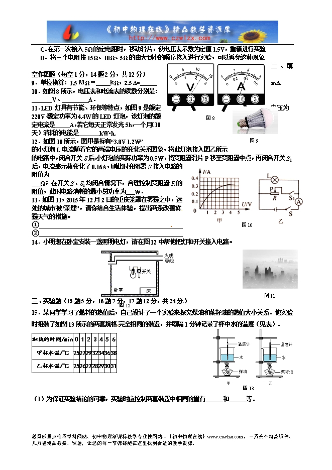 福建省莆田市第二十五中学2016届九年级上学期期末考试物理试题及答案