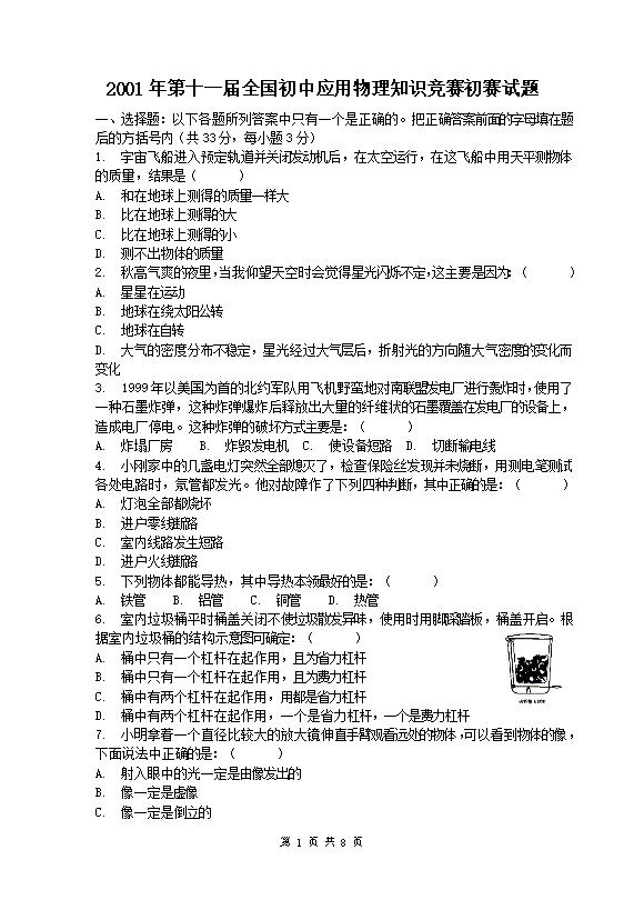 【点评】物理学中,对各种物理量的估算能力,是我们应该加强锻炼的重要能力之一,这种能力的提高,对我们的生活同样具有很大的现实意义.