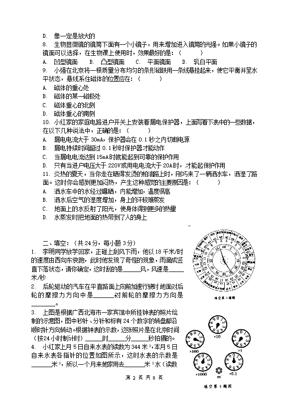 - 9722023-2024学年河南省南阳市桐柏县八年级上学期期末考试物理试题及答案