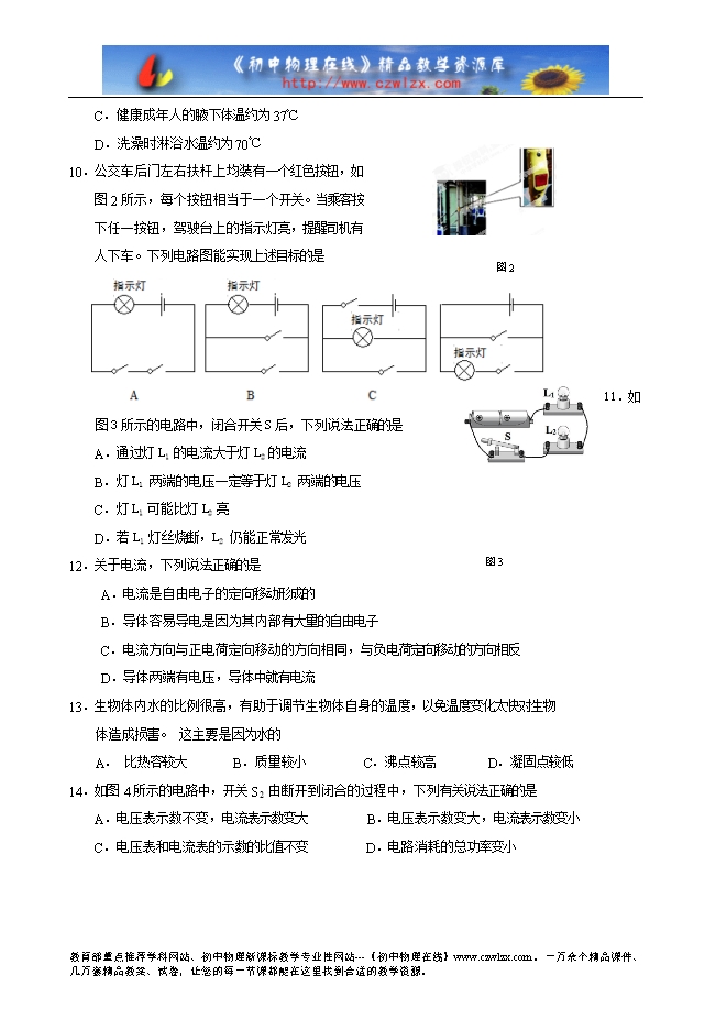 1.下列物理量中,以科学家的名字安培作为单位的物理量是